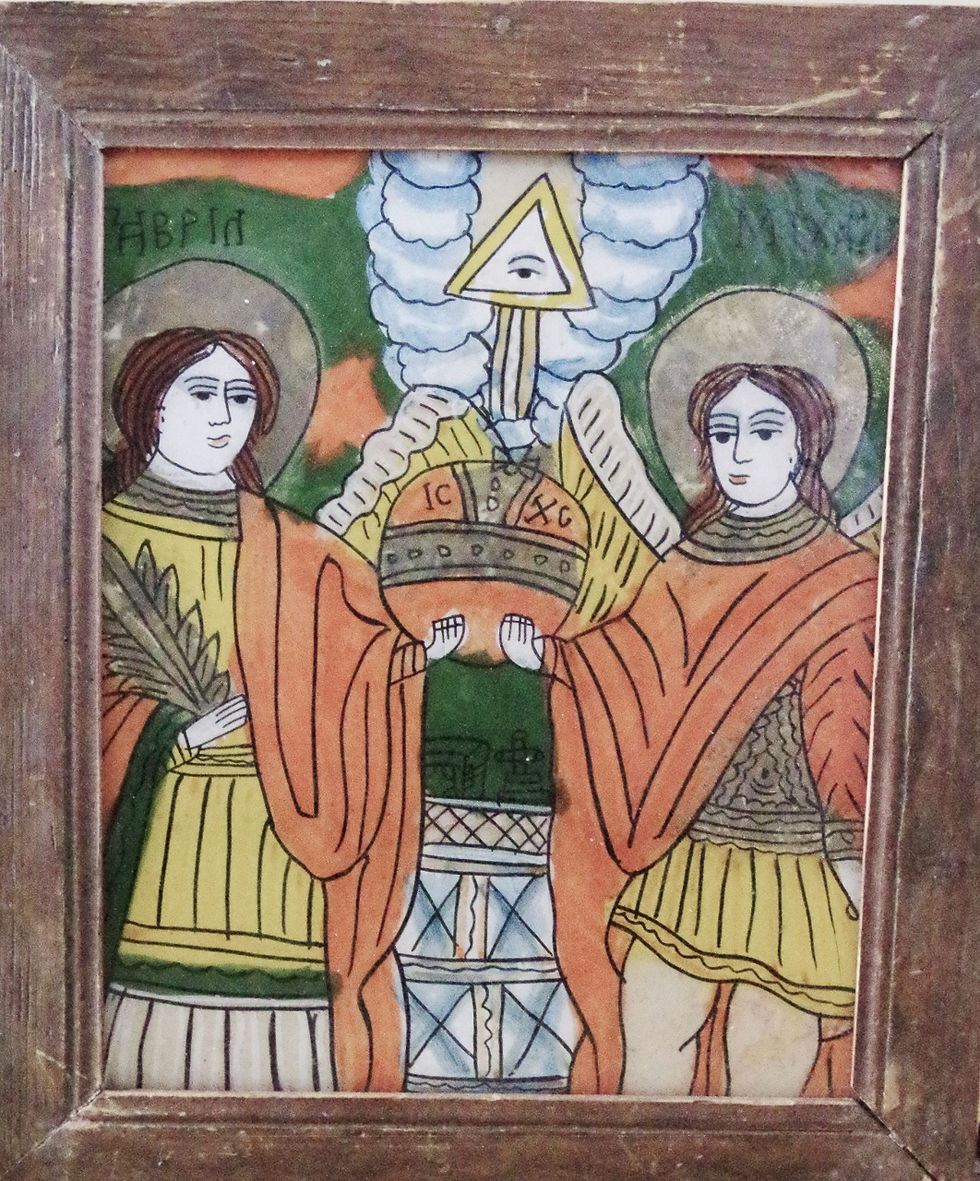 ☆[西洋骨董 アンティーク エンポリウム]アンティーク ルーマニア ガラス絵 イコン☆大天使ガブリエル・ミカエル